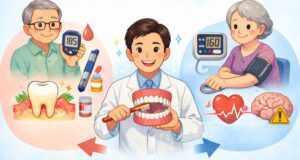 そう思われている方は少なくありません。しかし、糖尿病や高血圧をお持ちの方にとって、歯科医院は「命を守るための治療の場」と言っても過言ではありません。なぜなら、歯周病と全身疾患には、私たちが想像する以上に恐ろしい「負のスパイラル」が存在するからです。